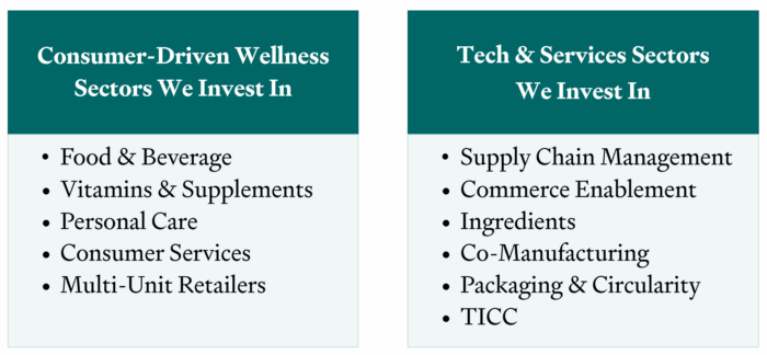 We look for growth-stage companies that are reshaping how people live, eat, and care for themselves. This includes breakout consumer brands as well as the technologies and services that power their growth.